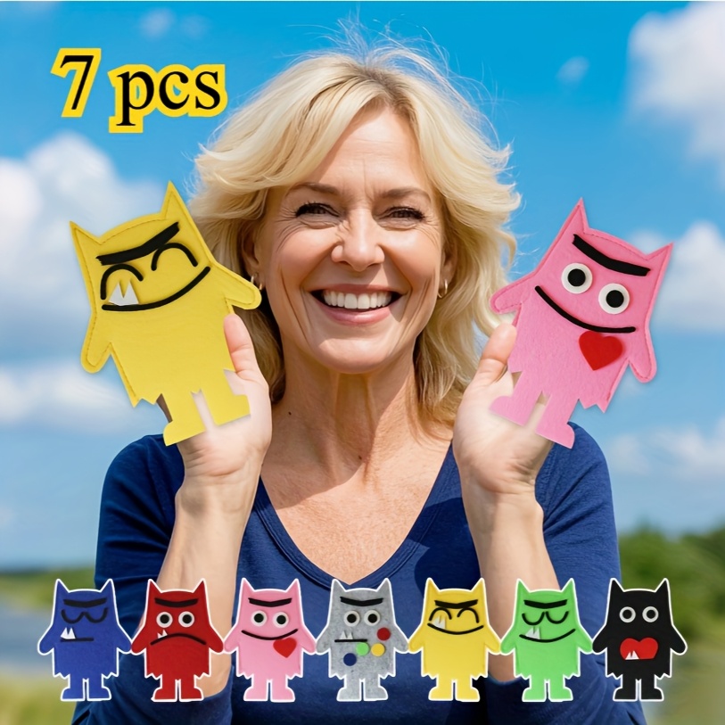 컬러풀 몬스터 펠트 핸드 퍼펫 세트 - 감정 색깔 인식 교구, 그림책 이야기 공연 소품, 교실 인터랙티브 에이프런 드라마. 교실 활동, 가족 부모-자녀 상호작용, 역할놀이에 적합; 유치원 아이들을 위한 재미있는 생일 및 크리스마스 선물