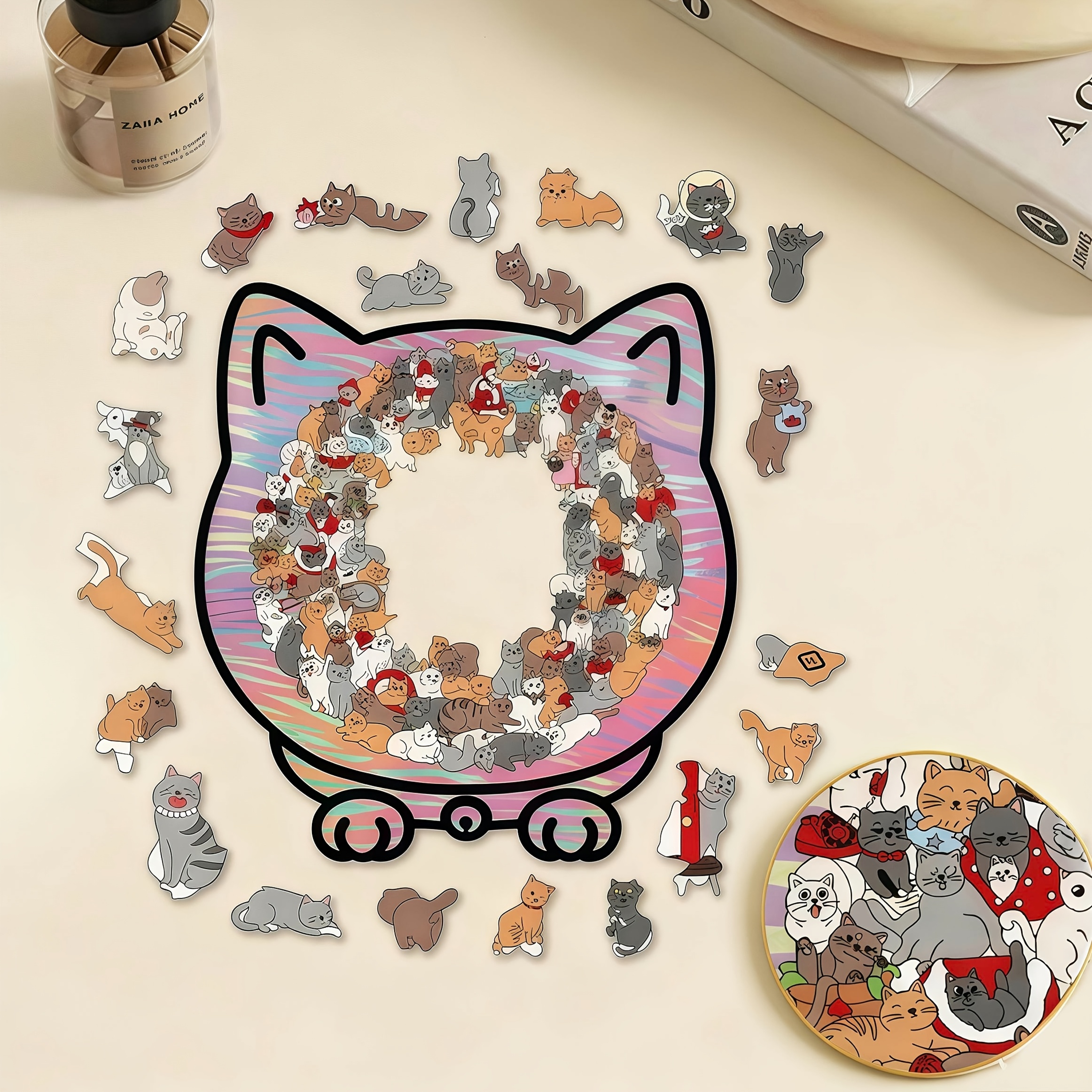 135피스 고양이 모양 나무 퍼즐 세트 - 135개 고양이 퍼즐 조각, 베이스, 아크릴 보드 포함, 독특한 동물 조각의 3D 귀여운 동물 장식, 고양이 애호가와 퍼즐 애호가를 위한 완벽한 선물 - 파티, 크리스마스, 추수감사절, 새해에 딱 맞는 홈 휴식용 완벽한 선물