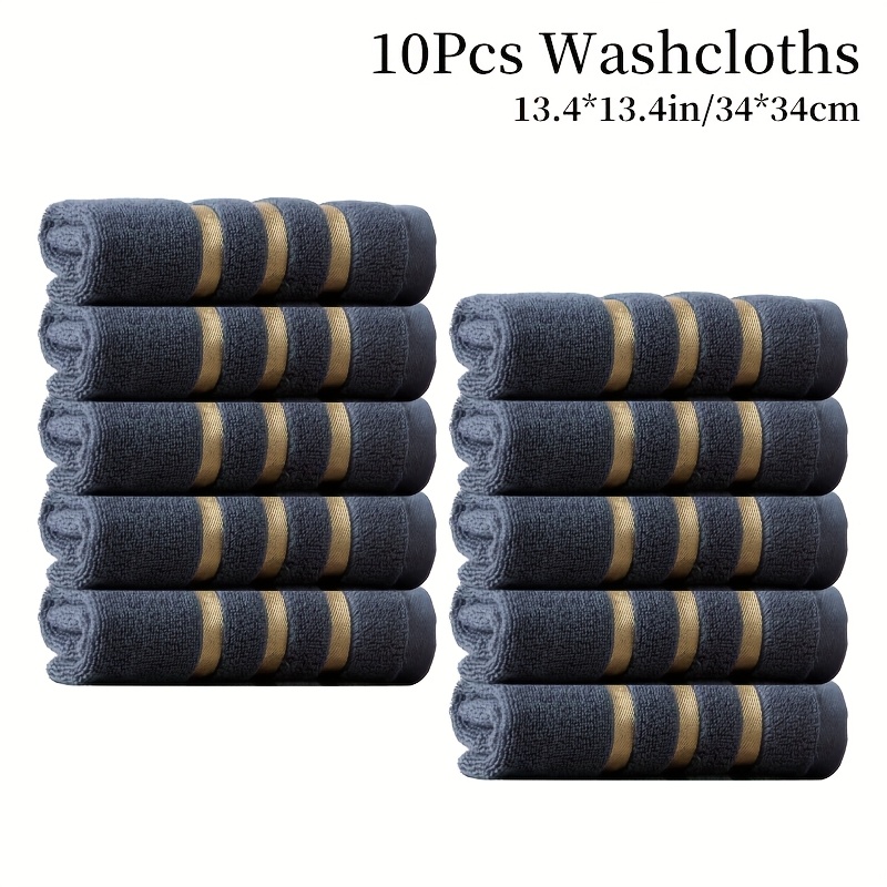10개입 100% 면 목욕 & 얼굴 타월 - 부드러운 플러시 손가락 끝 타월, 새틴 테두리, 줄무늬 모던 디자인, 다양한 색상, 욕실, 주방, 스파용 - 타월 세트