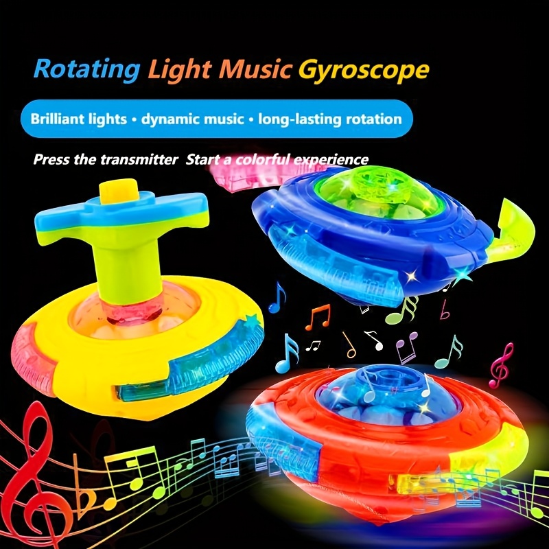 YTech UFO 자이로스코프 장난감 (트랜스미터 내장, 빛 & 다이나믹 사운드) - 회전 톱, 3가지 색상 옵션 (빨강, 노랑)