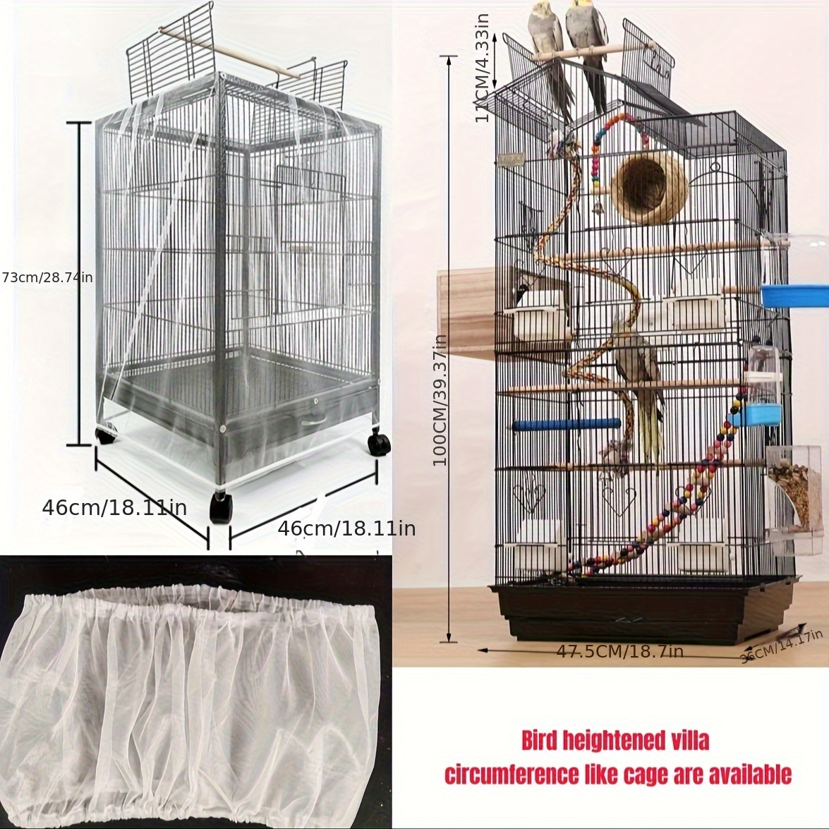 새장 메시 커버, 넘치거나 날아가는 깃털 방지 기능, 간편한 설치를 위한 확장형 탄성 클로저가 특징입니다. 밀도 높은 메시는 통기성이 좋고 모기 방지 기능이 있으며 반복적으로 사용하기 위해 청소되었습니다. 필수 액세서리로 적합합니다.