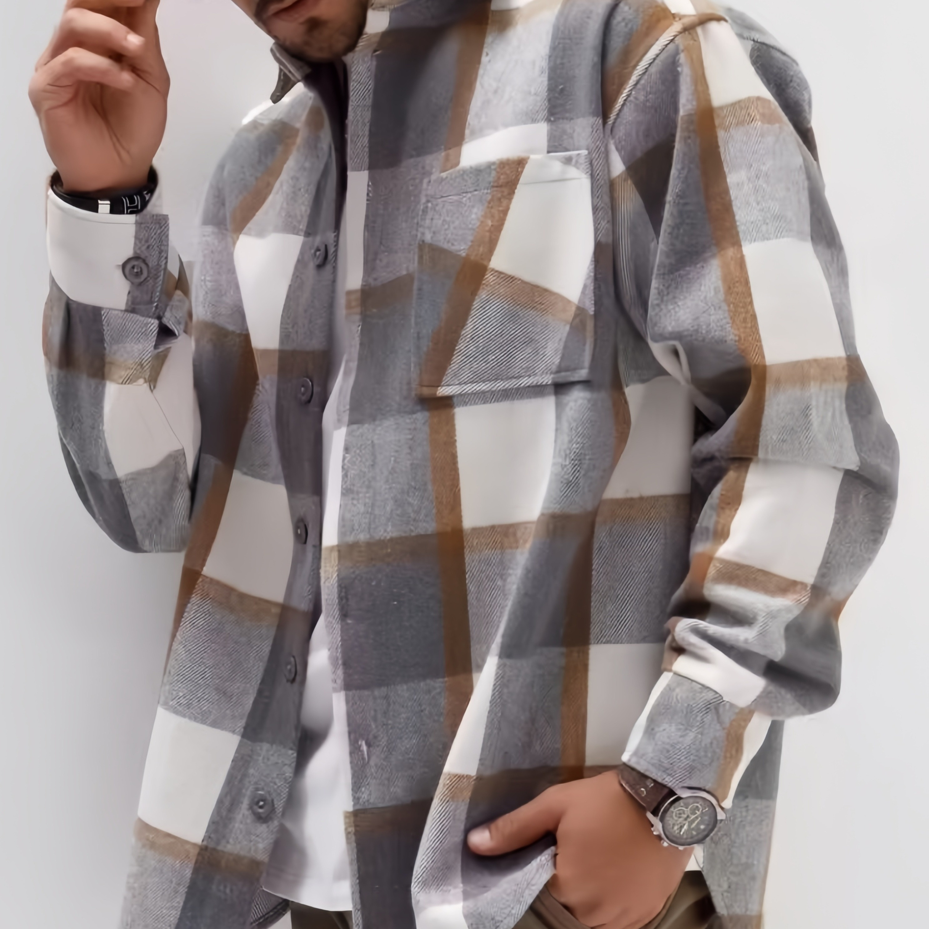 남성용 오버사이즈 체크 셔츠 재킷, 가슴 포켓이 있는 세련된 긴팔 셔츠, 따뜻한 겨울을 위한 트렌디한 디자인, 클래식 칼라, 집, 야외 활동, 사무실, 여행에 적합한 대형 사이즈