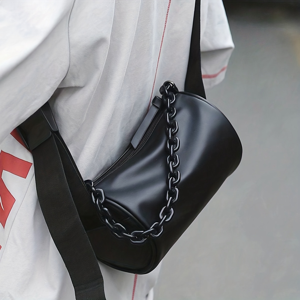 1개 남성용 실린더 크로스바디 백 - 조절 가능한 체인 스트랩, 컴팩트 스타일 숄더백, 출퇴근, 여행 및 야외 활동에 내구성 강함, 스마트폰 핸즈프리 캐리 - 다용도 소형 남성용 가방