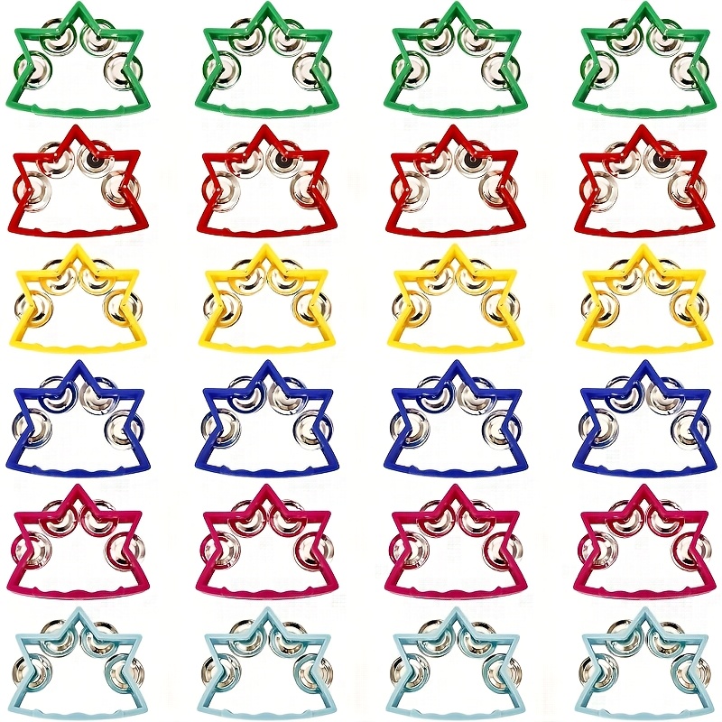 12팩 멀티컬러 오르프 악기 손뼉 벨 - 콘서트, 학교, 리듬 교육 및 타악기 공연용 별 모양 손잡이 소음 메이커 (생생한 색상, 내구성)