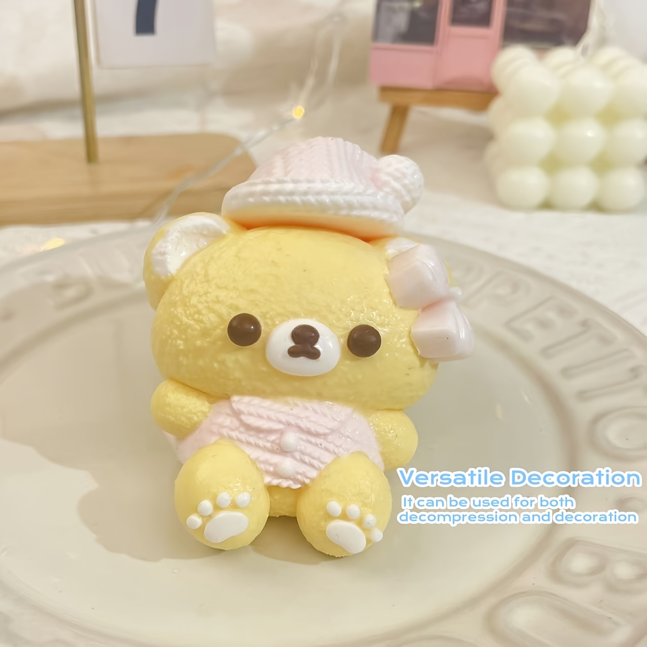 수제 리얼리스틱 스퀴시 베어 플러시 - 초소프트 핑크 & 화이트 피젯 토이 어른 & 아이용, 불안 완화 감각 보조, 귀와 발이 있는 귀여운 포옹 동반자, 스퀴시 컬렉터블 선물