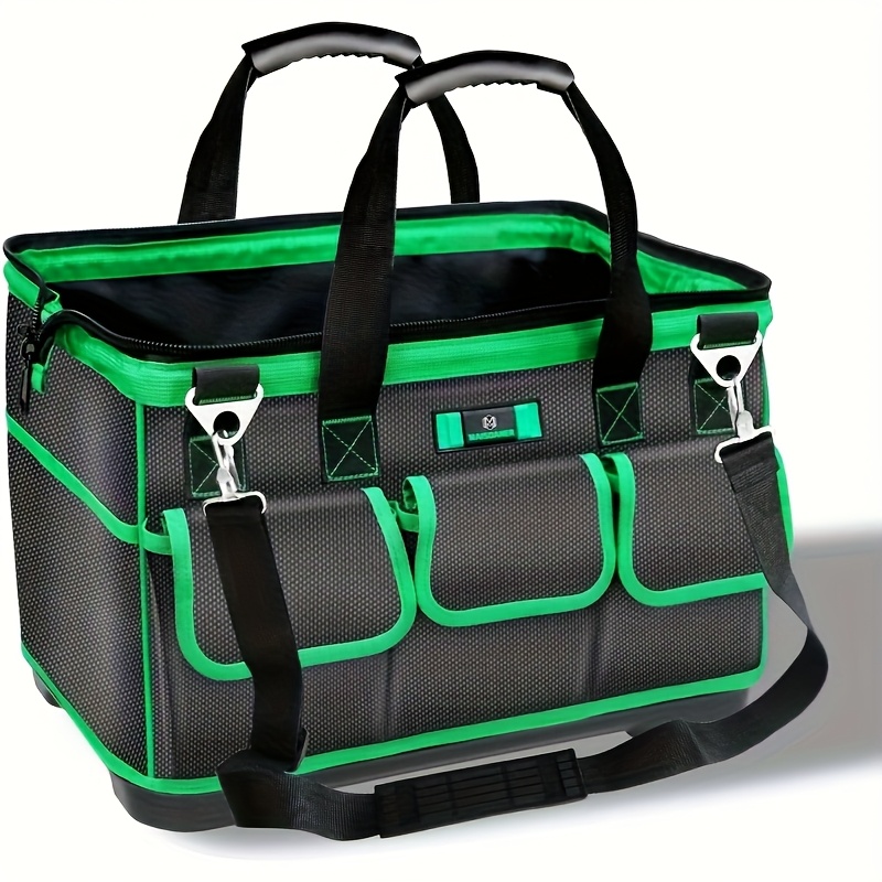 17인치 헤비듀티 전문가용 공구 가방 - 다수의 포켓, 조절 가능한 어깨끈 & 인체공학적 핸들 - 튼튼한 지퍼 잠금, 목수, 배관공, 전기공을 위한 공구 정리함 - 내구성 있는 작업용 백팩형 케이스 (블랙/네온 그린)
