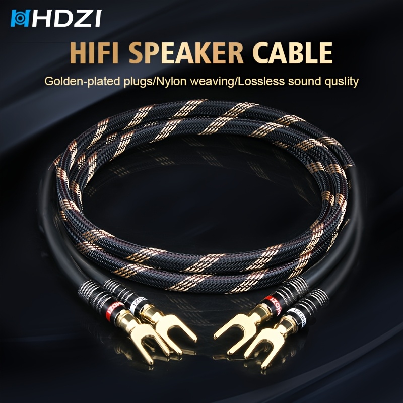 HHDZI 골드 도금 스피커 케이블 200-300cm - 내구성 있는 복합 와이어, 꼬임 방지 디자인, 골드 커넥터와 블랙 & 골드 스트라이프, 홈시어터, 음악 시스템, Hi-Fi 오디오에 적합