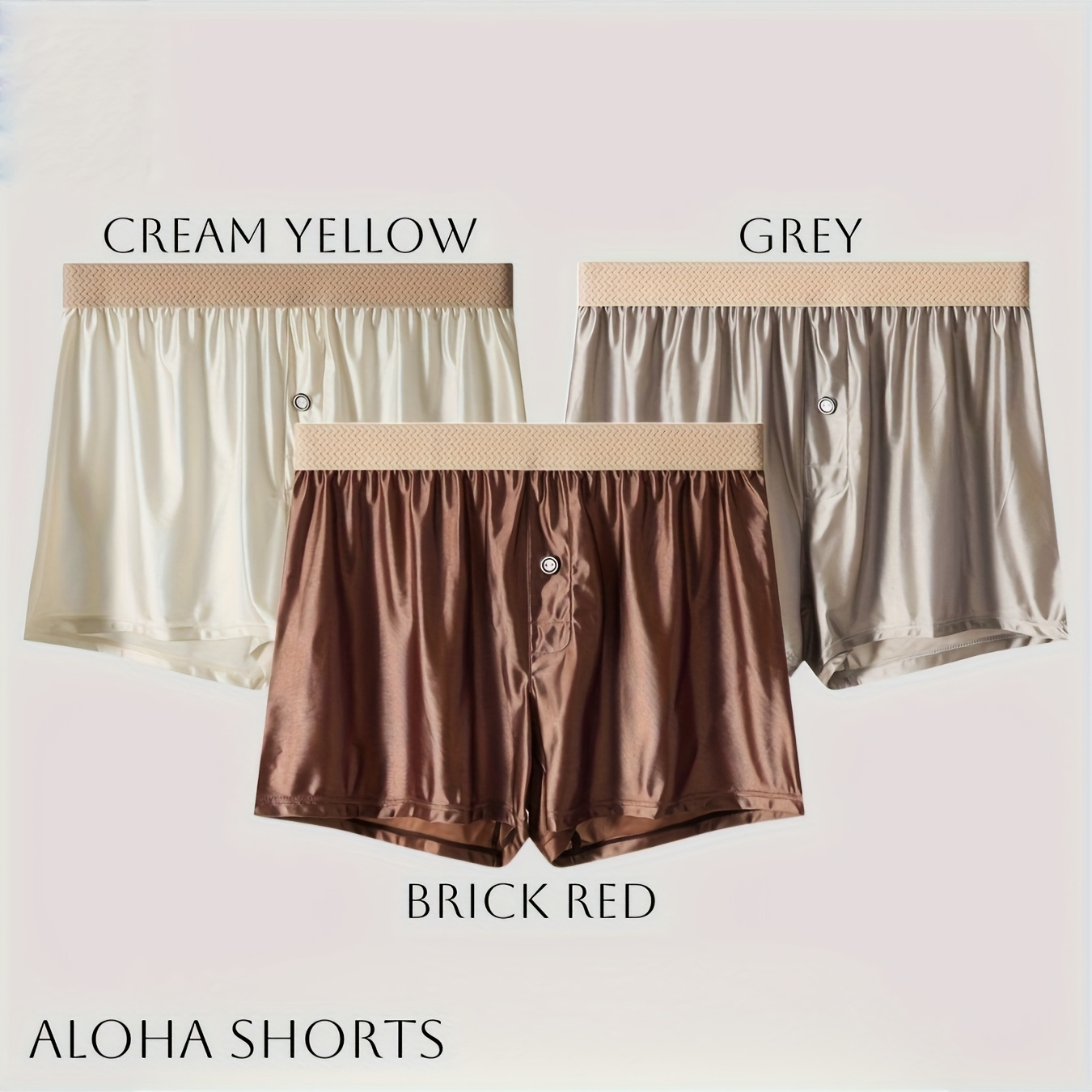 남성용 하이웨이스트 아이스 슬리키 섬유 박서 브리프 3개 세트 - 통기성 좋고 편안한 루즈핏, 신축성 있는 단색(크림 옐로우, 그레이, 화이트) - 캐주얼 의상에 적합한 가벼운 베이지 친화적, 여름 필수품, 편안한 속옷 | 매끄러운 디자인