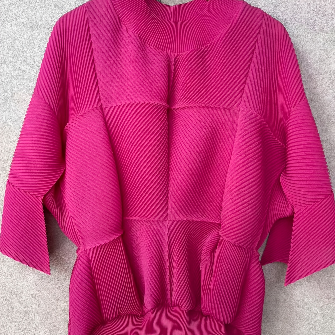 플러스 사이즈, 솔리드 컬러 플리츠 캐주얼 긴팔 티셔츠, 봄/가을 라운드 넥 다용도 루즈핏 여성용 탑