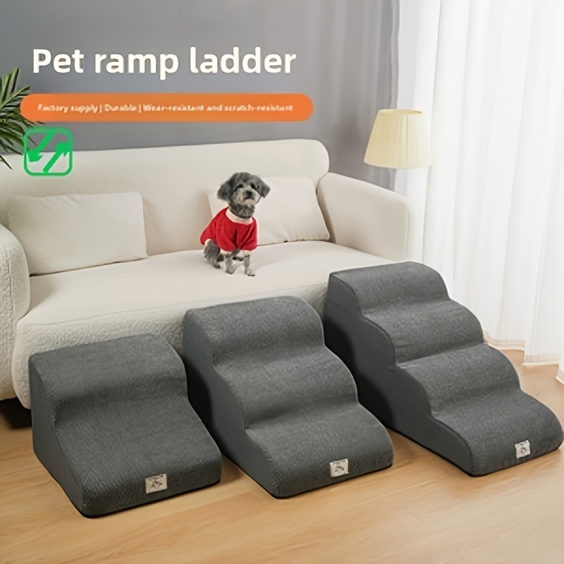 반려동물을 쉽게 침대에 올릴 수 있도록 설계된 계단. 안전한 등반을 위해 설계되었으며, 소형견을 위한 지지력을 제공합니다. 미끄럼 방지 단계와 세탁 가능한 커버가 특징이며, 소파를 위한 경사로로도 적합합니다.