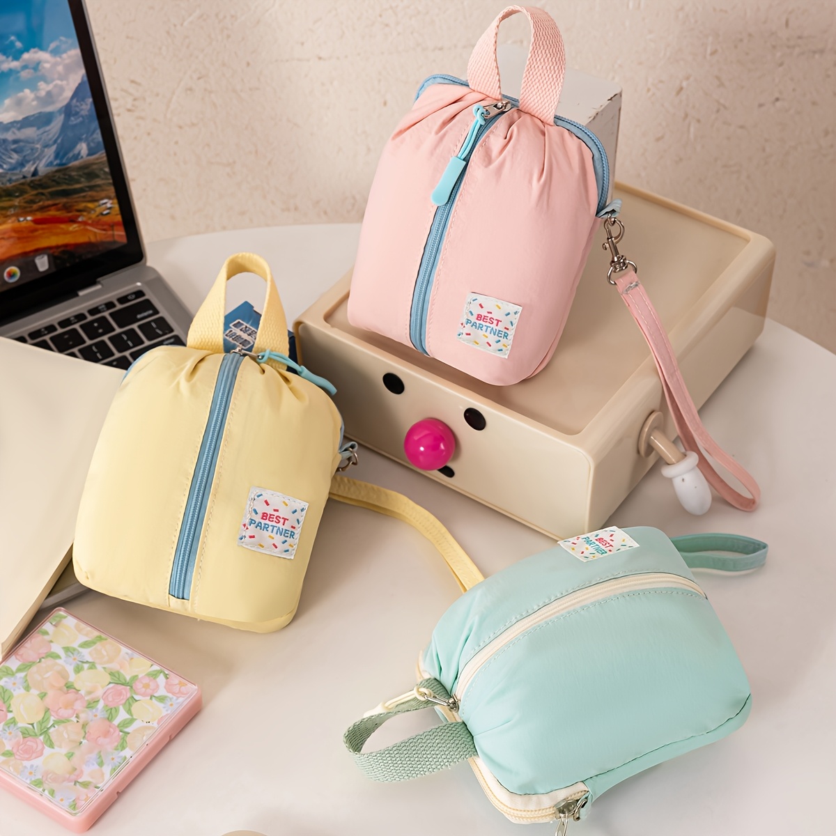 휴대용 다기능 수납 가방 | 마카롱 색상, 이중 레이어 디자인, 립스틱, 동전, 열쇠, 생리대 보관에 적합, 이상적인 크리스마스 선물