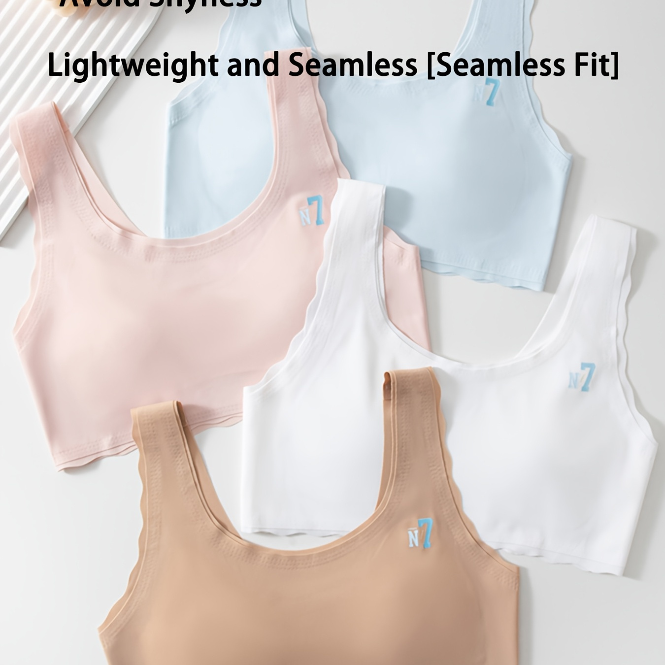 4개입 소녀 및 청소년용 성장 브라, 스포츠 조끼, 통기성 속옷, 귀여운 고양이 모양 코스터, 사계절용 라운드넥 트레이닝 브라, 소녀 첫 브라 (손세탁 가능, 탈착식 패드 없음), 7-14세 소녀용