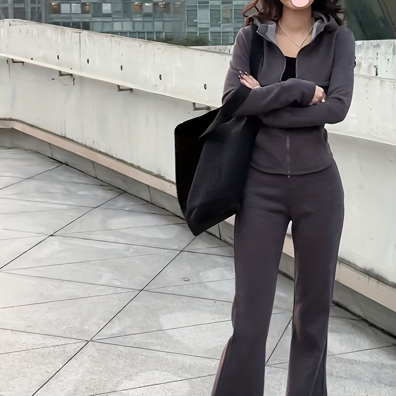 여성용 다용도 후드 가디건 스웨트셔츠 & 와이드 레그 팬츠 투피스 세트 | 가을 신상, 패셔너블 캐주얼, 단색