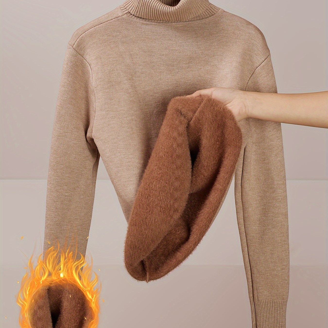 가을/겨울 스타일 안감 보온성 강화 여성용 원피스 플러시 스웨터, 겨울용 두껍고 따뜻한 하이넥 베이스 레이어 탑, 가을/겨울용 신축성 있는 이너 스웨터