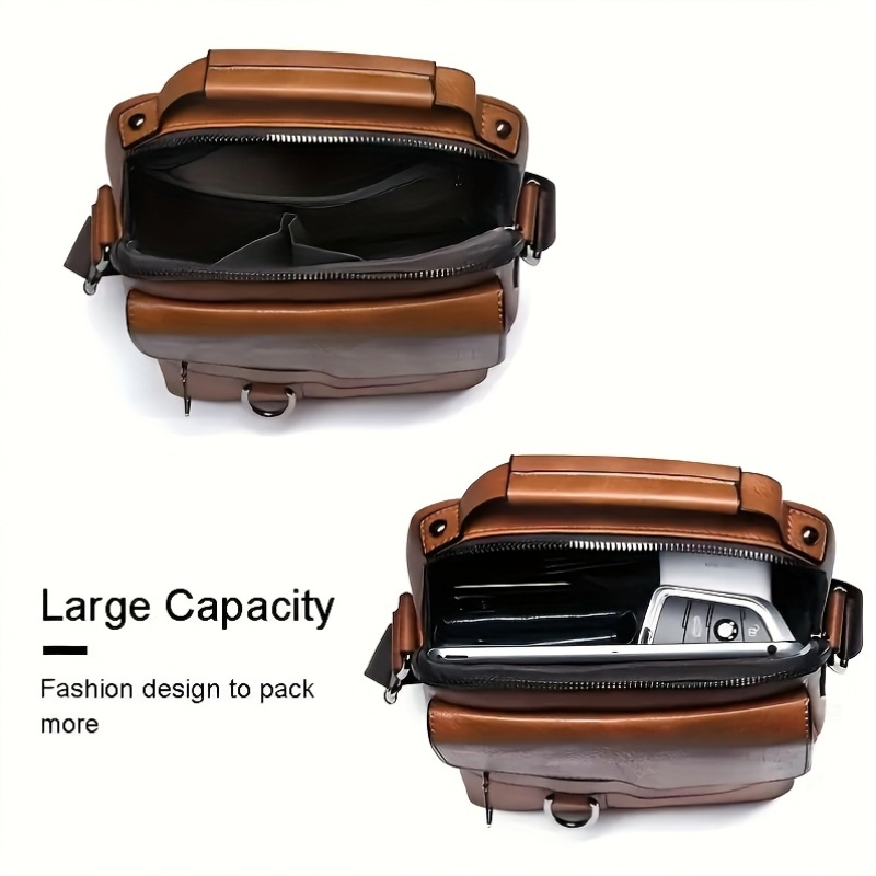 남성용 천연 가죽 메신저 백 - 조절 가능한 어깨 스트랩, 앞면 플랩 잠금, 지퍼 포켓이 있는 빈티지 비즈니스 토트백 - 사무실, 여행 및 공식 행사에 적합 - 클래식 전문 배달 배낭, 작업 액세서리