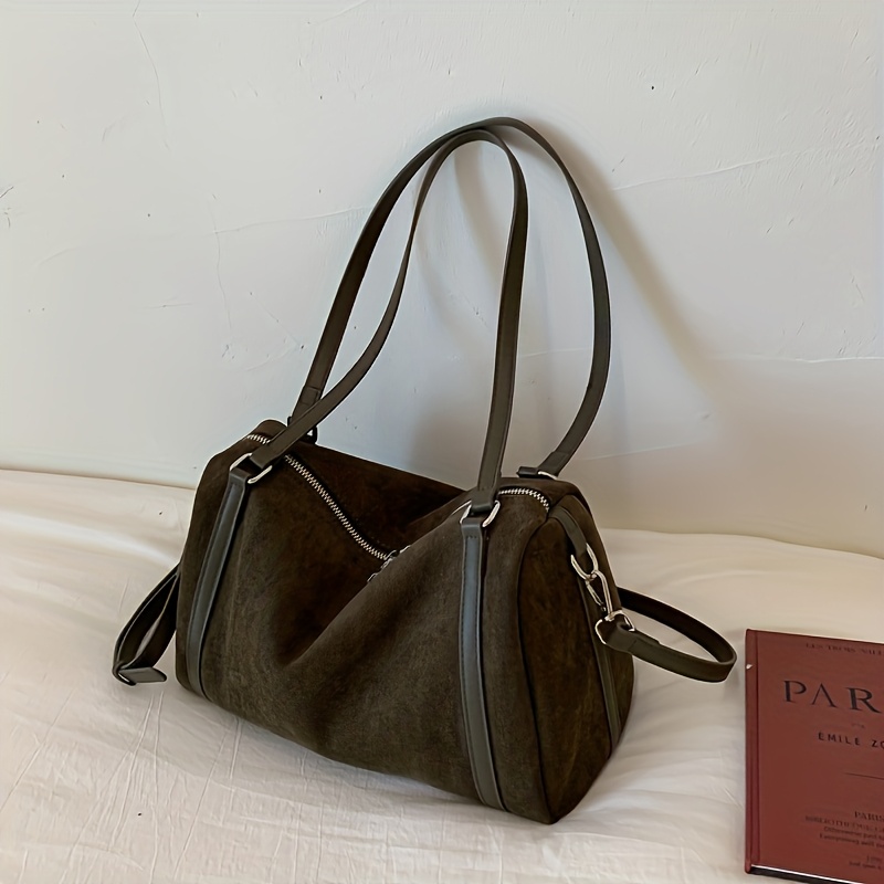 아이솔레이티드 뷰티 빈티지 여성용 대형 토트백 - 듀얼 퍼포즈 핸드백 & 크로스바디, 조절 가능한 스트랩, 지퍼 클로저, 손목 스트랩 - 가벼운 (디어스킨/플란넬) //틸/ - 우아한 캐주얼 & 프로페셔널