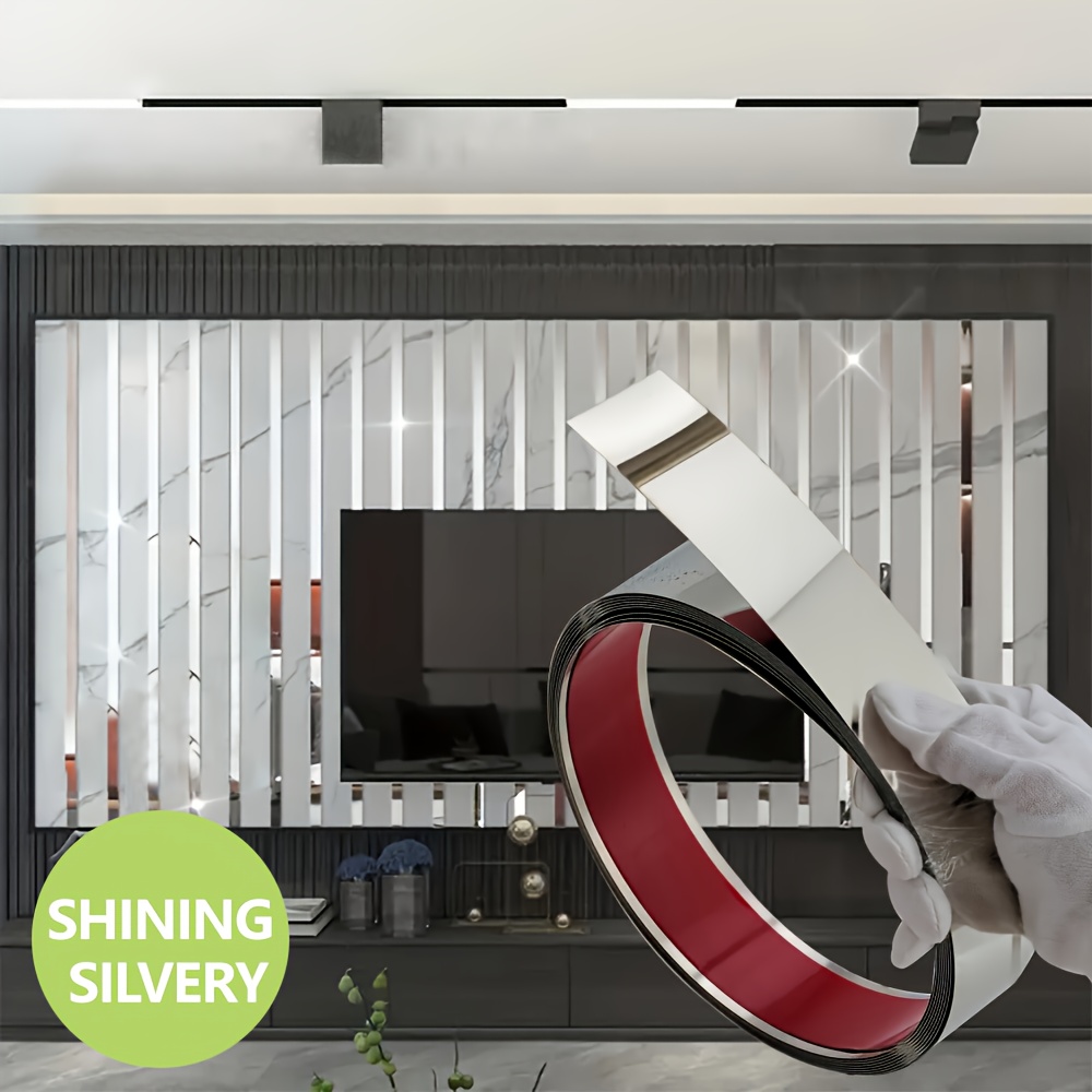1롤 실버 스테인리스 스틸 장식 스트립, 미러 효과, 현대적인 실내 장식용, 천장 테두리 및 DIY 금속 벽 장식에 적합
