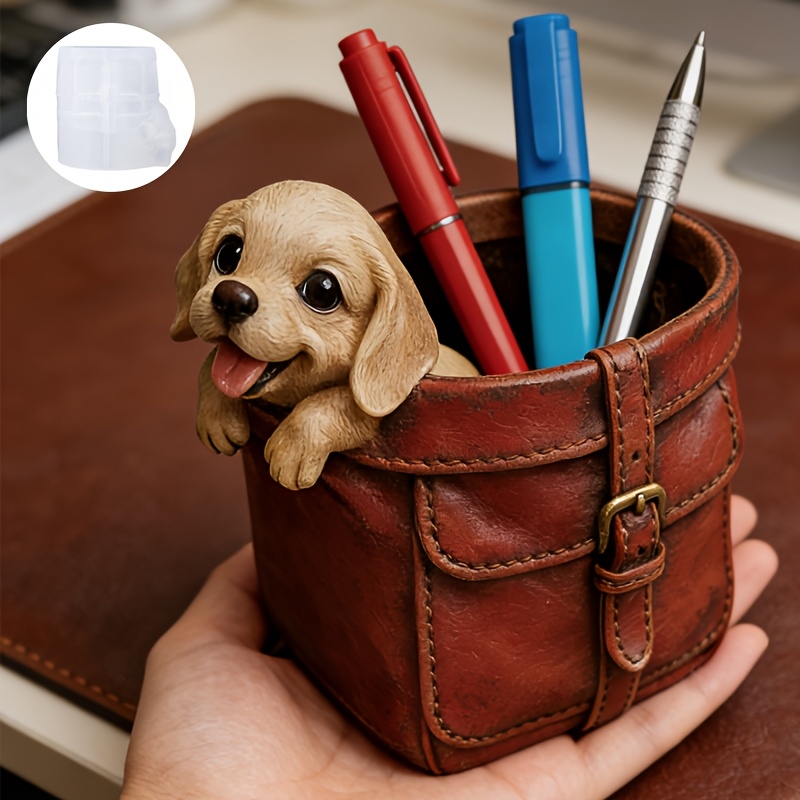 레진 캐스팅 몰드, 귀여운 작은 강아지 브리프케이스 모양의 실리콘 몰드, 부드럽고 내구성이 뛰어나며 변형이 쉬워지지 않습니다. 레진, 석고, 시멘트와 같은 재료에 적합합니다. 수제 데스크탑 보관 용품, 학습실 문구 장식에 이상적입니다.