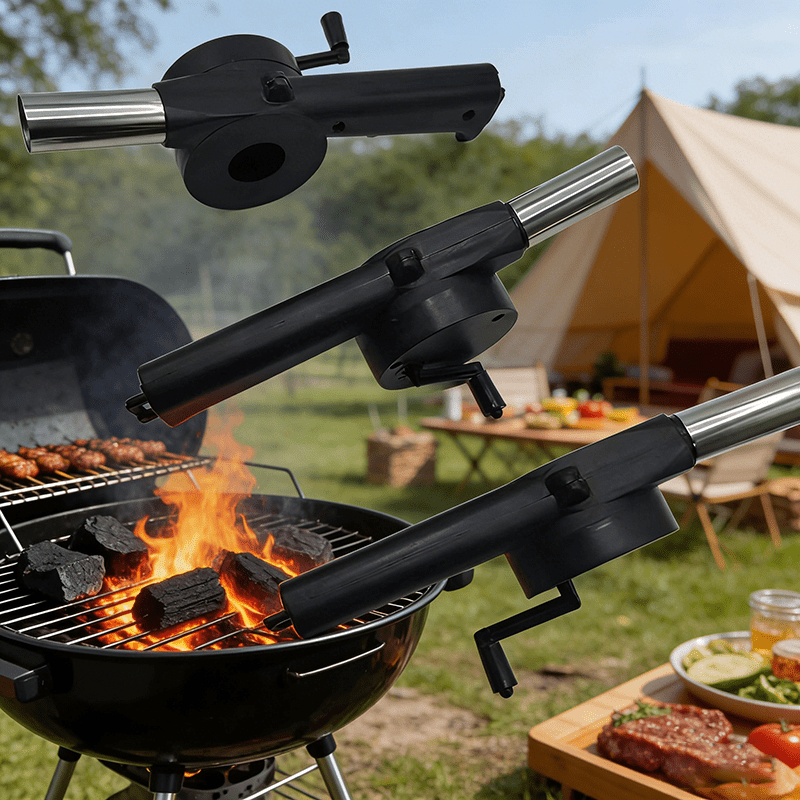 3개 야외 휴대용 핸드 크랭크 블로워, 바베큐 숯 점화용 핸드 오퍼레이션 에어 블로워, 가정용 바베큐 숯 보조 연소 블로워, 휴대용 핸드 크랭크 바베큐 블로워, 야외 그릴링 및 숯 보조에 이상적