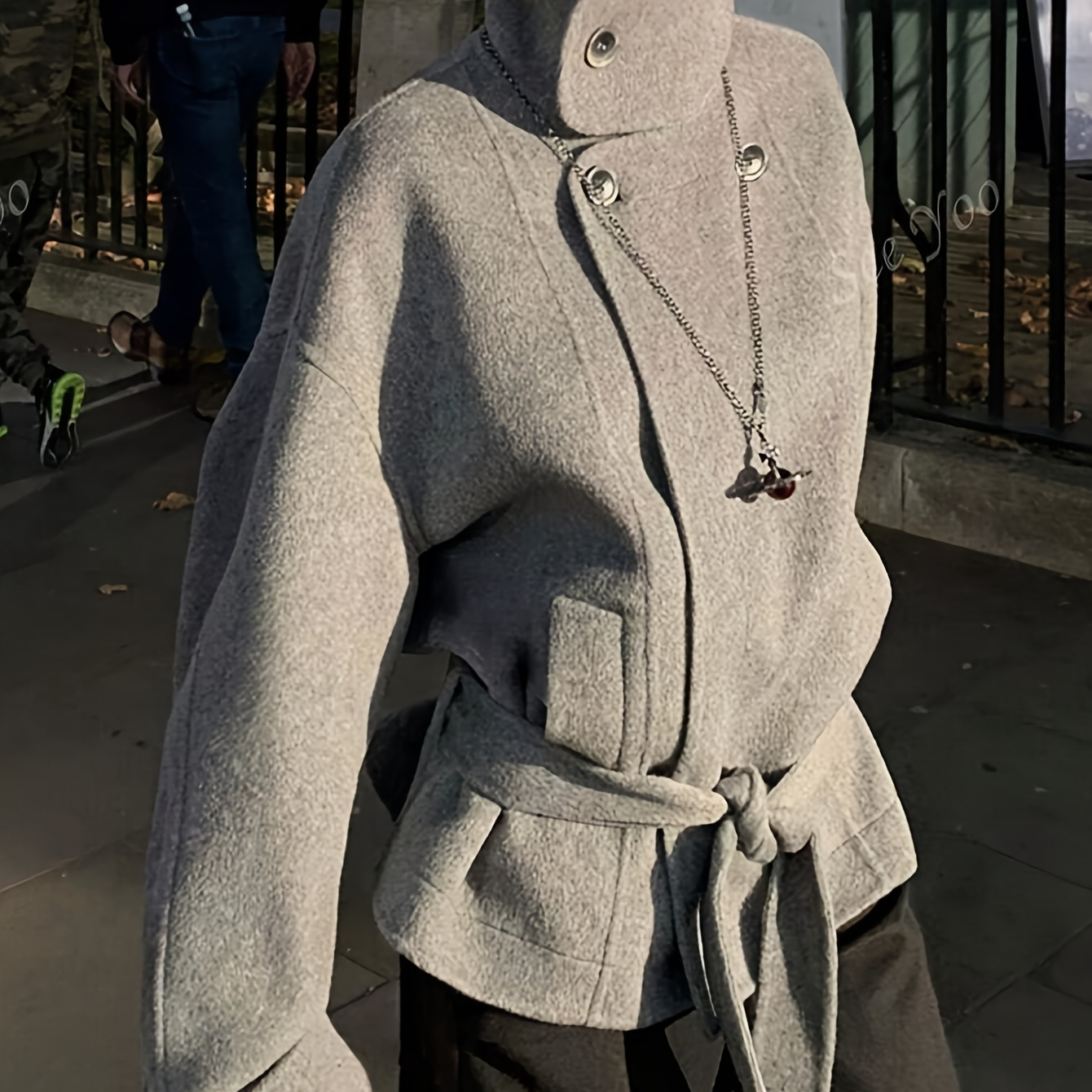 새로운 가을/겨울 여성 패션 코트. 단색, 하이 칼라, 벨트, 버튼, 사이드 포켓이 특징이며, 이브닝, 휴가, 공식적인 행사에 적합합니다.