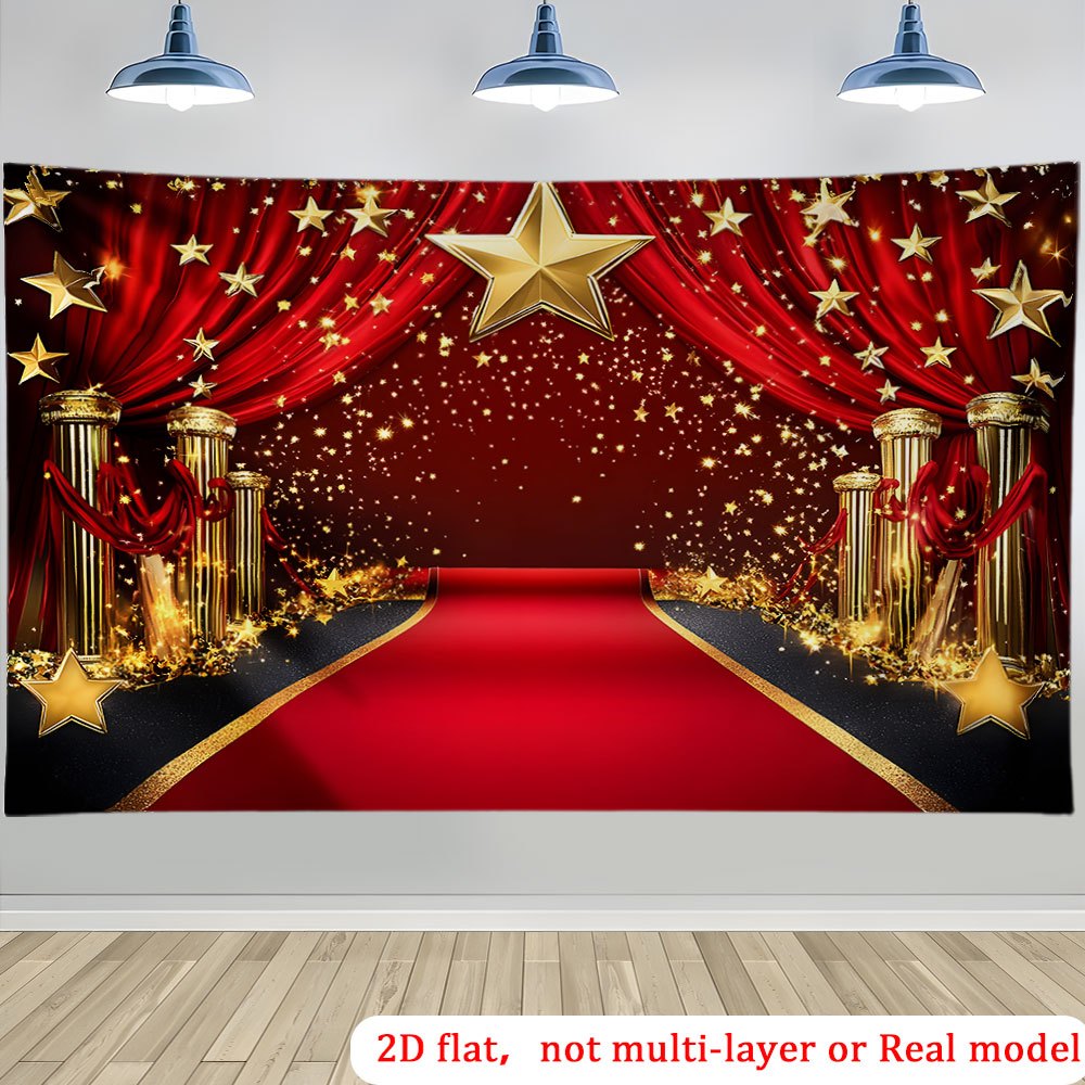 초대형 2D 평면 프린트 파티 배너 (레드 카펫 별 포함), HD 프린팅으로 가라지 배경에 이상적. 사진 부스, 생일 축하, 기념일 파티 및 휴일 장식에 완벽