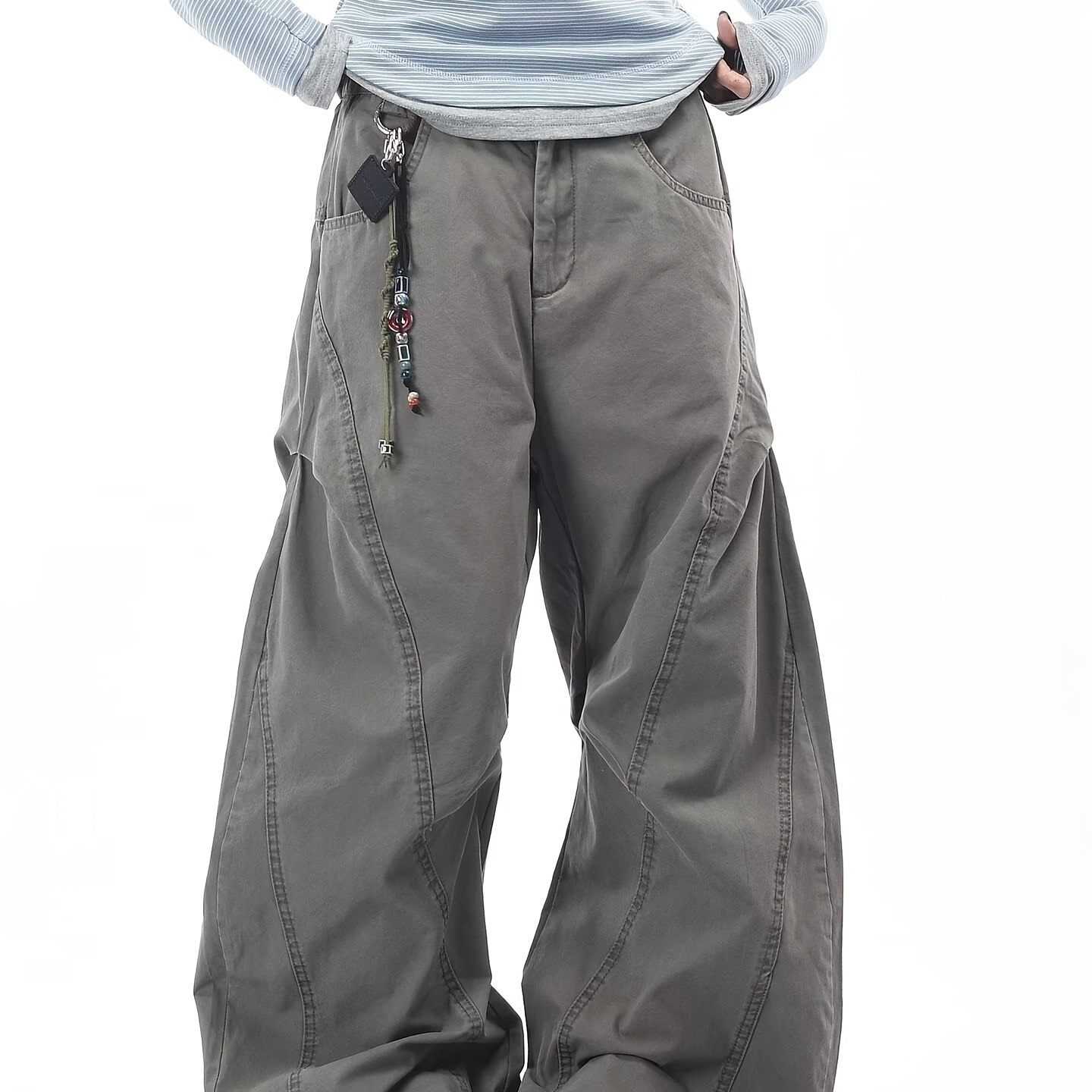남성용 빈티지 아메리칸 스타일 와이드 레그 카고 바지 | 루즈 스트레이트 레그, 디스트레스드 캐주얼 핏, 논스트레치 원단, 단색