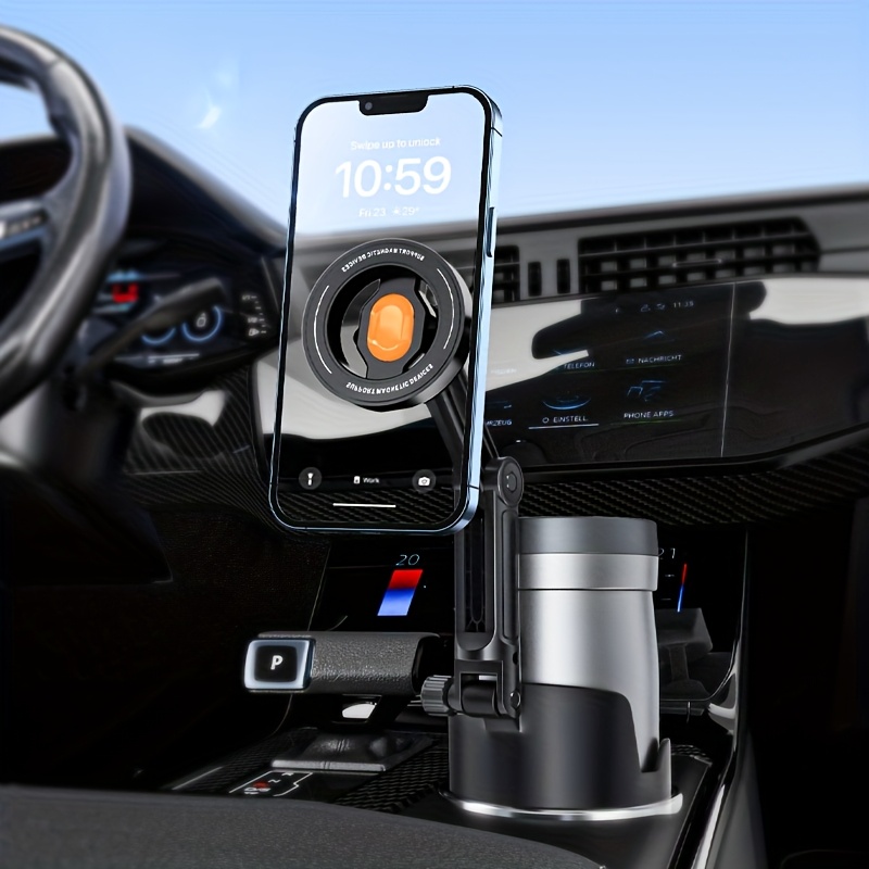 컵 홀더 자석 휴대폰 거치대, 높이 조절 가능한 디자인, 360° 회전으로 유연한 시야각, 강력한 흡착력으로 흔들림 없는 한 손 사용, 4~35.56cm 태블릿 및 휴대폰 호환
