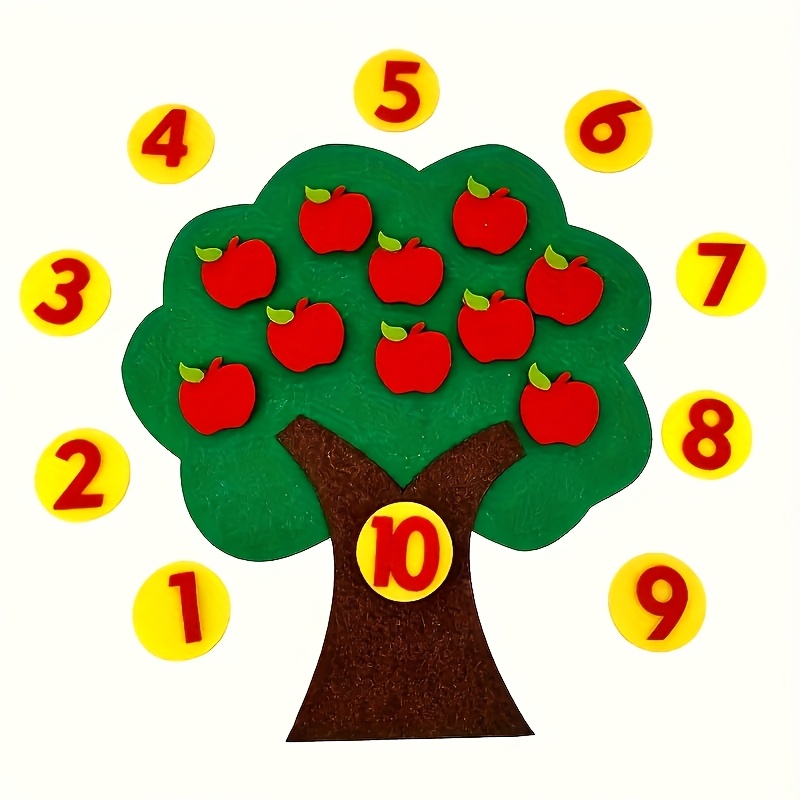 10 Numbers, 10 Apples, 1 Apple Tree. Number Felt Tree Board Addition and Subtraction Math Game. Teaching Kindergarten Number Counting Toy. Apple Tree Number Matching Game Suitable for Preschool Learning