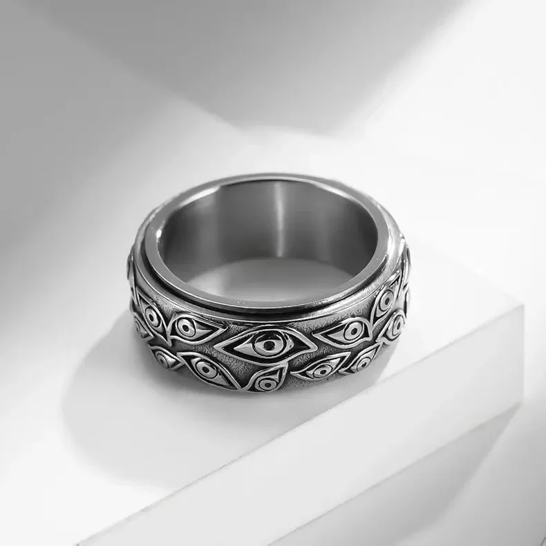 남성용 스테인레스 스틸 반지, 빈티지 티타늄 반지, 회전 고리, 팔찌 액세서리, 신의 눈
