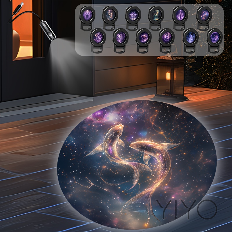12성자리 마당 잔디밭 야외 조명 장식 프로젝션 램프, USB 전원 휴대용 360도 회전 LED 조명, 현관, 문, 벽, 바닥 등에 적합, 다양한 패턴 제공, 집들이 선물로 좋은 선택