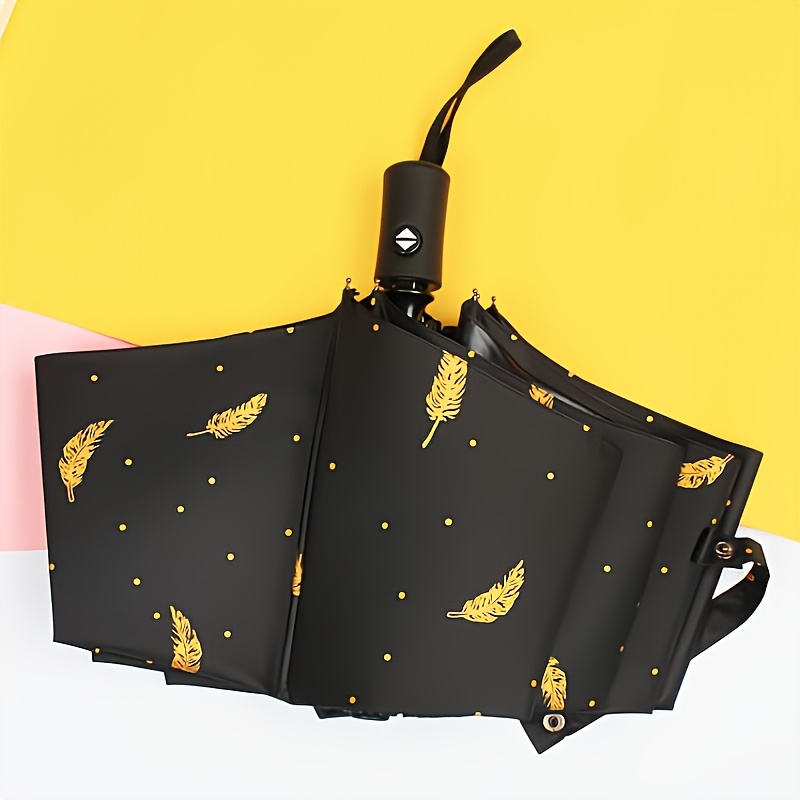 2025 최신 패션 자동 접이식 우산, 깃털 디자인, 블랙/화이트 또는 블루 색상, 8살 내구성 휴대용 플라스틱 우산, 일상 출퇴근 및 야외 사용에 이상적